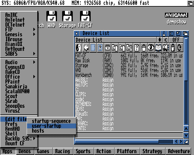 OS: AmigaOS 3.1 with DOpus Magellan 2