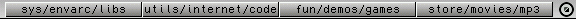 - I have found usefull to have button bank with different locations on your partitions. Text buttons for clarity or graphical buttons with drive icons for something else. You can then open listers with one click. You can set different location for different mouse buttons. Here in example picture you could open sys: with lmb, envarc: with mmb and libs: with rmb when clicking leftmost button. Use "ScanDir NEW path" command in function editor.