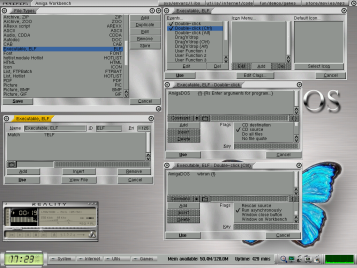 A: Make "Executable, ELF" or similar filetype. Create class which matches to ?ELF ("Match ?ELF"). I'd suggest that use low priority. Then other filetypes may override the executable filetype. But if you have "All" filetype or similar, then set the priority higher than it has. Then edit double click function to "AmigaDOS {f}" or "AmigaDOS {f} {Rs Enter arguments for program...", for example. You might also want to be able to execute program with icon tooltypes. Normal way to double click with shift key doesn't work, but you can make function for ctrl-key for example. "AmigaDOS wbrun {f}" will work for it.